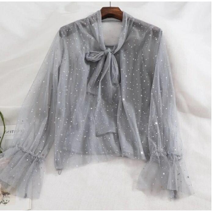 レースブラウス ブラウス シャツ 総レース オーガンジー ラメ スパンコール ボウタイブラウス ギャザースリーブ 春ブラウス ミニマルコーデ シンプル ベーシッ Gvon Olulu 通販 Yahoo ショッピング